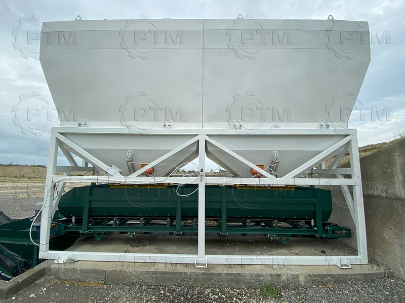 Дозирующий комплекс СТ-40 (2 * 20), имеет два бункера инертных материалов под щебень и песок. Для комплекса не требуется изготовление специального фундамента, достаточно ровной площадки, нужно обеспечить плотное прилегание основания дозирующего комплекса. Дозатор предназначен для точного дозирования щебня и песка.