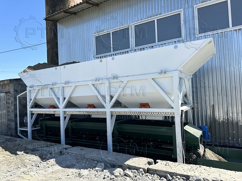 Дозирующий комплекс СТ-30 (3 * 10), имеет три бункера инертных материалов под щебень и песок, отсев. Для комплекса не требуется изготовление специального фундамента, достаточно ровной площадки, нужно обеспечить плотное прилегание основания дозирующего комплекса. Дозатор предназначен для точного дозирования щебня и песка.