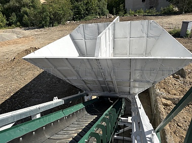 1.      Дозирующий комплекс ДРКМ-40 (4 секции по 10 м3): состоит из двух до четырех бункеров для хранения инертных материалов (щебень, песок, отсев). На каждом бункере имеется два пневмо- затвора, необходимых для точной дозации материалов. При дозировании материалы попадают на весовой ленточный конвейер, весовые датчики фирмы CAS Ю. Корея, при наборе нужного количества материалов, заслонки закрываются, подача прекращается. Каждый бункер оснащен вибродвигателем MVE 300/3.