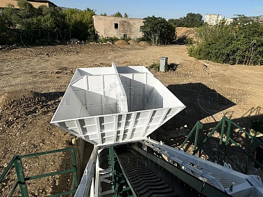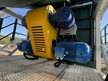 1.      Дозирующий комплекс ДРКМ-40 (4 секции по 10 м3): состоит из двух до четырех бункеров для хранения инертных материалов (щебень, песок, отсев). На каждом бункере имеется два пневмо- затвора, необходимых для точной дозации материалов. При дозировании материалы попадают на весовой ленточный конвейер, весовые датчики фирмы CAS Ю. Корея, при наборе нужного количества материалов, заслонки закрываются, подача прекращается. Каждый бункер оснащен вибродвигателем MVE 300/3.
