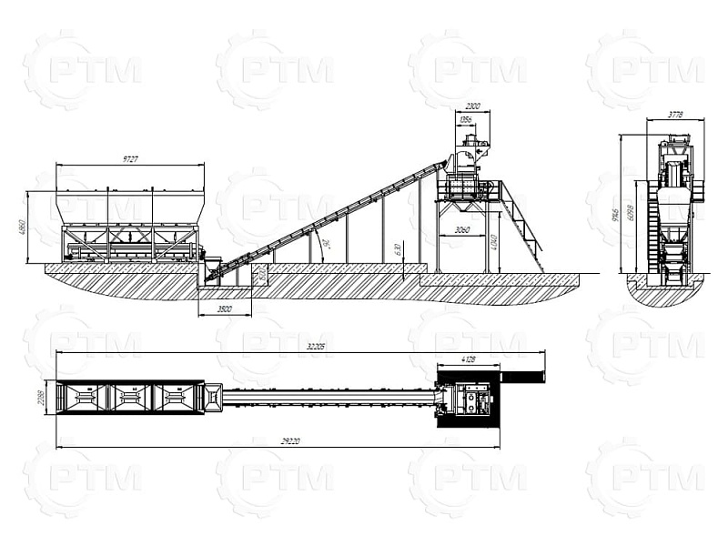 2. После набора нужного количества материалов инертные попадают на наклонный ленточный конвейер с шевронной лентой. Ширина ленты 600 мм, длинна конвейера 16 метров.