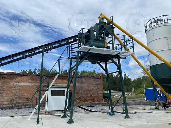 5. Склад цемента и подача в блок дозаторов. При необходимости завод комплектуется складом цемента (силосом). Силосная банка (опция) необходима для хранения цемента и различных сухих смесей. Транспортировка из силоса происходит с помощью шнекового конвейера. Силос необходимо подбирать из расчета трехдневного запаса цемента.