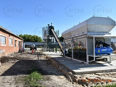 Данный завод производительность от 15 до 18 м3/час товарного бетона марки м200 или раствора. Объём загрузки бетоносмесителя 375 литров, объем выгрузки готового бетона 250 литров. Один цикл не более 55 секунд. Время работы цикла регулируется оператором бетонного завода.