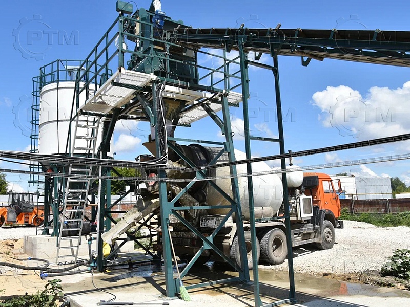 Ленточный бетонный завод с двухвальным бетоносмесителем — это производственное оборудование, которое используется для смешивания и производства бетонной смеси с высокой производительностью и качеством, завод автоматический, принцип “одна кнопка” Он состоит из следующих основных компонентов: