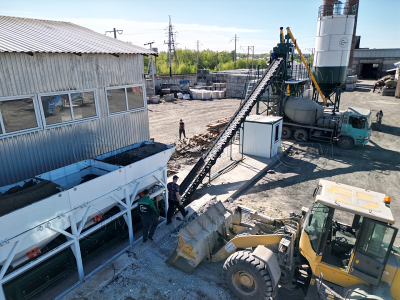 Ленточный бетонный завод с двухвальным бетоносмесителем — это производственное оборудование, которое используется для смешивания и производства бетонной смеси с высокой производительностью и качеством, завод автоматический, принцип “одна кнопка” он состоит из следующих основных компонентов: