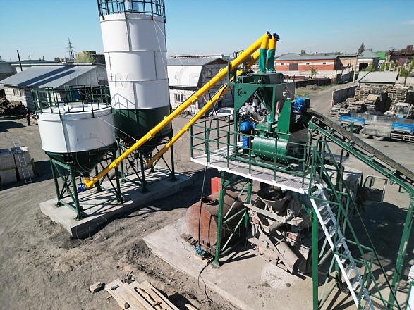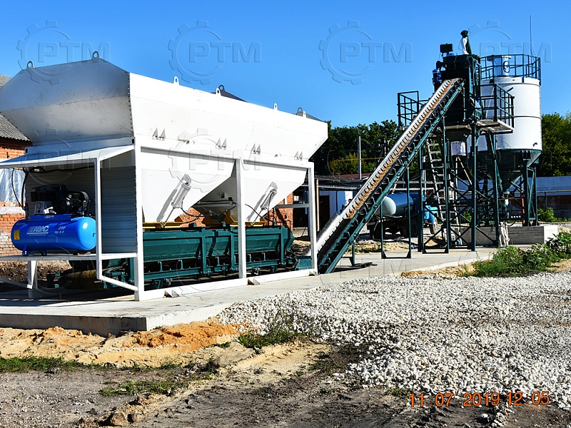 Данный завод производительность от 28 до 36 м3/час товарного бетона марки м200 или раствора. Объём загрузки бетоносмесителя 750 литров, объем выгрузки готового бетона 500 литров. Один цикл не более 55 секунд. Время работы цикла регулируется оператором бетонного завода.