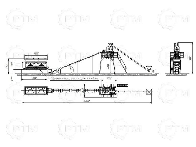2. После набора нужного количества материалов инертные попадают на наклонный ленточный конвейер с шевронной лентой. Ширина ленты 600 мм, длинна конвейера 16 метров.