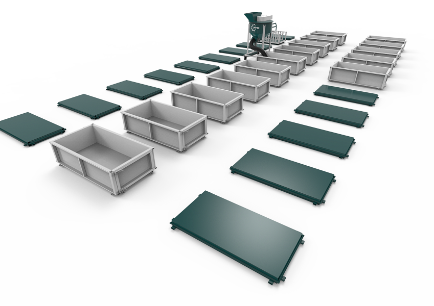 3.     Борта форм: используется для формирования блоков из смеси. Стандартный размер формы мини- линии 1200*600 мм. Входит шесть блоков размерами 600* 200* 300, мм.