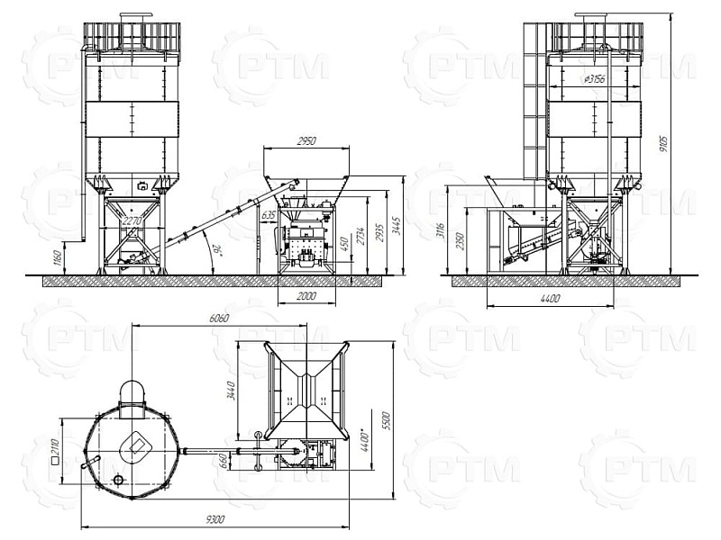 5. Склад цемента и подача в блок дозаторов. При необходимости завод комплектуется складом цемента (силосом или расстаривателем биг бэгов). Силос или расстариватель биг бэгов (опция) необходим для хранения цемента и различных сухих смесей. Транспортировка из силоса происходит с помощью шнекового конвейера. Силос необходимо подбирать из расчета трехдневного запаса цемента.