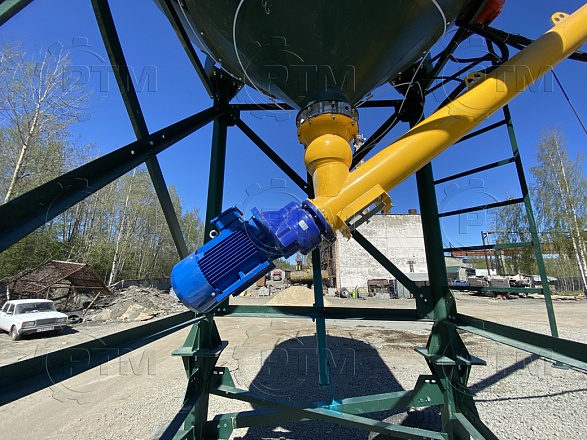 5.     Склад цемента и подача в блок дозаторов. При необходимости завод комплектуется складом цемента (силосом или расстаривателем биг бэгов). Силос или расстариватель биг бэгов (опция) необходим для хранения цемента и различных сухих смесей. Транспортировка из силоса происходит с помощью шнекового конвейера. Силос необходимо подбирать из расчета трехдневного запаса цемента.