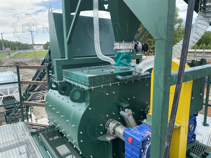2.      После набора нужного количества материалов инертные попадают в одновальный бетоносмеситель.