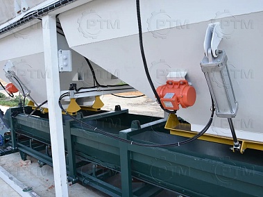 4.     Блок дозаторов РТМ-15 Э (цемента- 150 кг). Тут привходит дозирование цемента, воды и различных добавок. Во время смешивания в бетоносмесителе также можно добавлять различные добавки, такие как пластификаторы, красители или вяжущие вещества. Они дозируются и подаются в бетоносмеситель, чтобы обеспечить требуемые свойства бетонной смеси. Каждый дозатор расположен на трех весовых датчиках, фирмы CAS Ю.Корея. Это обеспечивает высокий уровень дозации материалов.