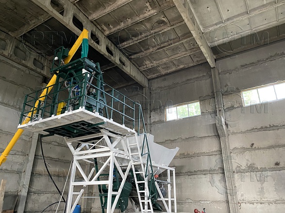 Данный завод производительность от 17 до 25 м3/час товарного бетона марки м200 или раствора. Объём загрузки бетоносмесителя 450 литров, объем выгрузки готового бетона 250 литров. Один цикл не более 55 секунд. Время работы цикла регулируется оператором бетонного завода.