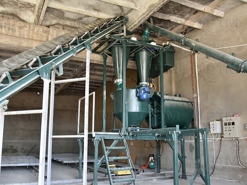 Приемка и загрузка сырья: Начальный этап включает приемку основного сырья, такого как портландцемент, песок, каустическую соду, сульфат натрия и алюминиевую пудру. Сырье загружается в блок весовых дозаторов, в котором происходит взвешивание ингредиентов. Оператор задает какое необходимо количество ингредиентов (цемента, песка), при завершении набора, подающие конвейеры останавливаются. Цемент подается при помощи шнекового конвейера, песок при помощи ленточного конвейера.