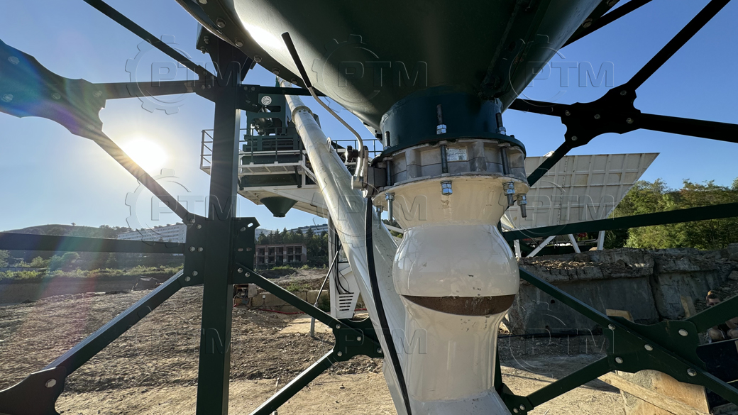 Силос выполнен из цилиндрической банки и конуса, что обеспечивает естественное движение цемента. Он имеет закрытую верхнюю часть для защиты материала от неблагоприятных погодных условий.