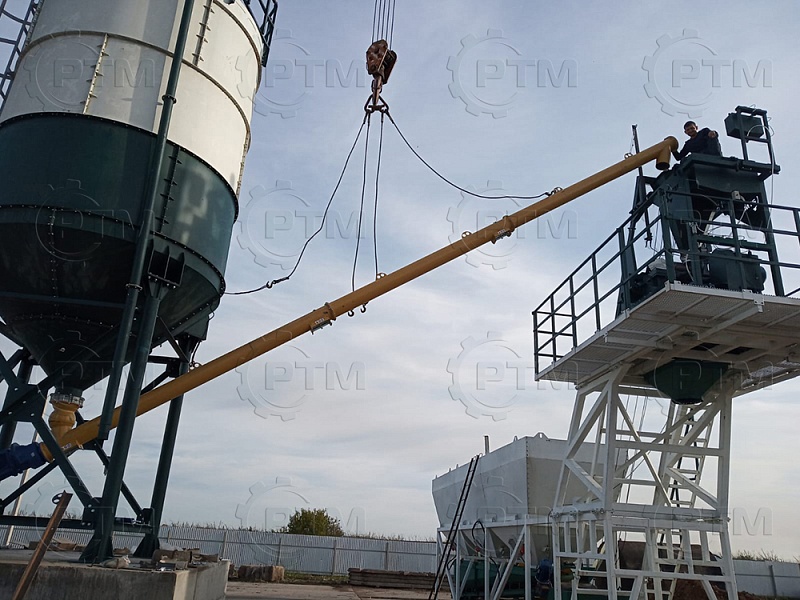 Силос цемента предназначен для хранения цемента на площадке. Силос принимает цемент по трубе закачки от цементовоза, сохраняет его от внешних воздействий. Далее цемент подается при помощи шнекового конвейера на блок дозаторов. На блоке дозаторов взвешивается и попадает в производственный цикл бетона на бетонном заводе.