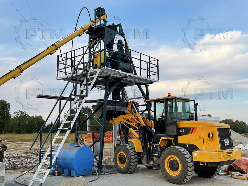Данный завод производительность от 20 до 30 м3/час товарного бетона марки м200 или раствора. Объём загрузки бетоносмесителя 750 литров, объем выгрузки готового бетона 500 литров. Один цикл не более 55 секунд. Время работы цикла регулируется оператором бетонного завода.