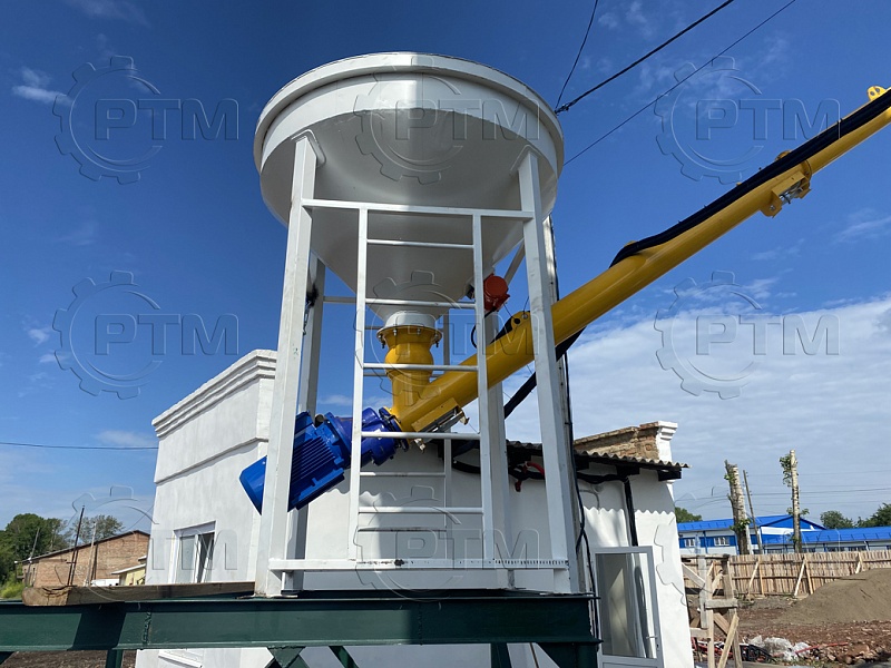 5.     Склад цемента и подача в блок дозаторов. При необходимости завод комплектуется складом цемента (силосом или растаривателем биг бэгов). Силос или растариватель биг бэгов (опция) необходим для хранения цемента и различных сухих смесей. Транспортировка из силоса происходит с помощью шнекового конвейера. Силос необходимо подбирать из расчета трехдневного запаса цемента.