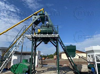 Данный завод производительность от 35 до 45 м3/час товарного бетона марки м200 или раствора. Объём загрузки бетоносмесителя 1200 литров, объем выгрузки готового бетона 800 литров. Один цикл не более 55 секунд. Время работы цикла регулируется оператором бетонного завода.