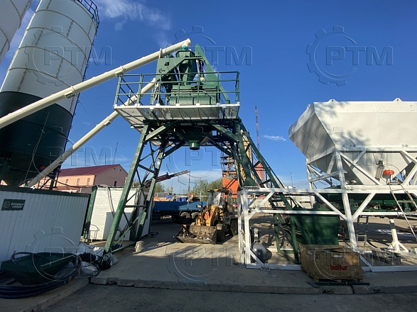 Данный завод производительность от 45 до 60 м3/час товарного бетона марки м200 или раствора. Объём загрузки бетоносмесителя 1500 литров, объем выгрузки готового бетона 1000 литров. Один цикл не более 55 секунд. Время работы цикла регулируется оператором бетонного завода.