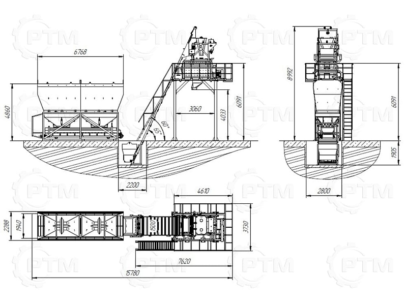 Скиповый бетонный завод с одновальным бетоносмесителем — это производственное оборудование, которое используется для смешивания и производства бетонной смеси с высокой производительностью и качеством, завод автоматический, принцип “одна кнопка” Он состоит из следующих основных компонентов: