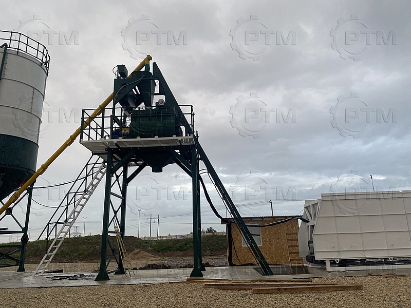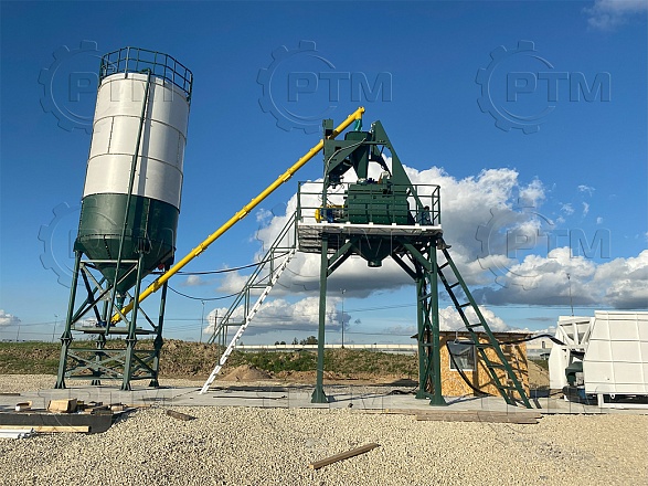 Скиповый бетонный завод с двухвальным бетоносмесителем — это производственное оборудование, которое используется для смешивания и производства бетонной смеси с высокой производительностью и качеством, завод автоматический, принцип “одна кнопка” Он состоит из следующих основных компонентов: