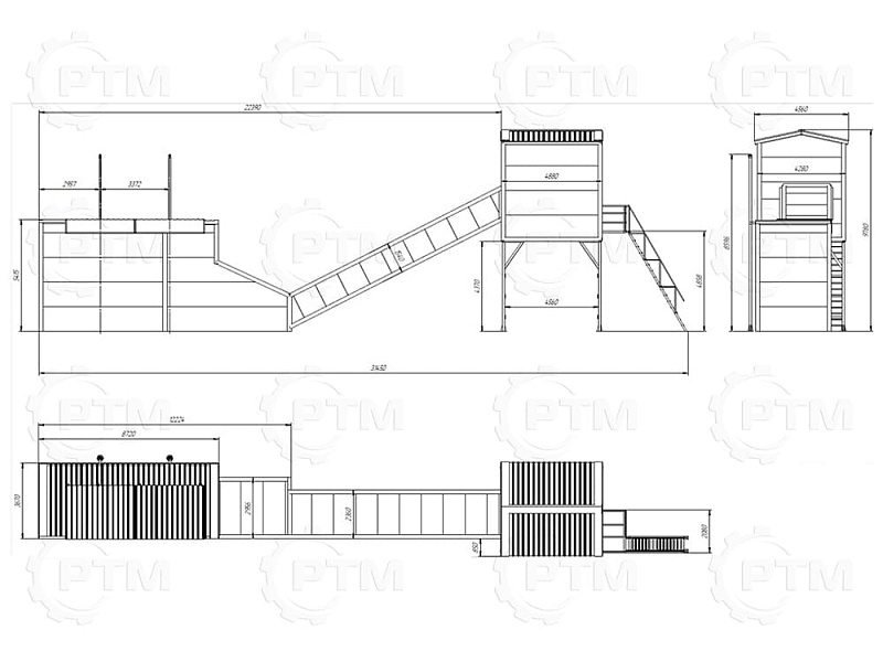2.      После набора нужного количества материалов инертные попадают на наклонный ленточный конвейер с шевронной лентой. Ширина ленты 600 мм, длинна конвейера 16 метров.