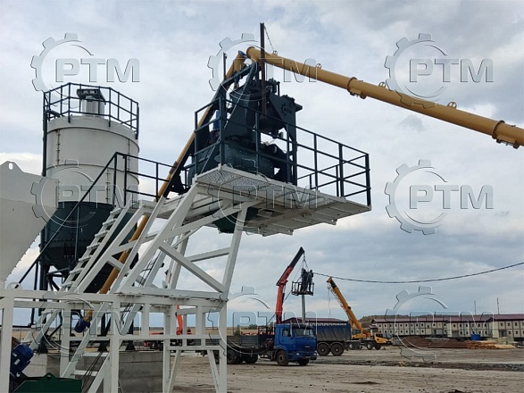 Данный завод производительность от 20 до 30 м3/час товарного бетона марки м200 или раствора. Объём загрузки бетоносмесителя 750 литров, объем выгрузки готового бетона 500 литров. Один цикл не более 55 секунд. Время работы цикла регулируется оператором бетонного завода.