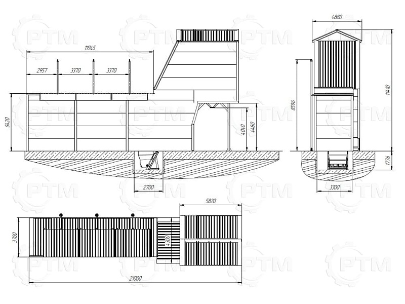 2. После набора нужного количества материалов инертные попадают на наклонный ленточный конвейер с шевронной лентой. Ширина ленты 600 мм, длинна конвейера 16 метров.